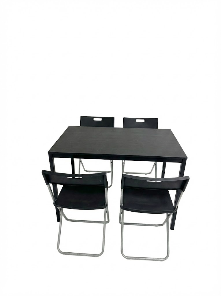 IKEA TARENDO Dining Table with 4 GUNDE Folding Chairs – Black – Used