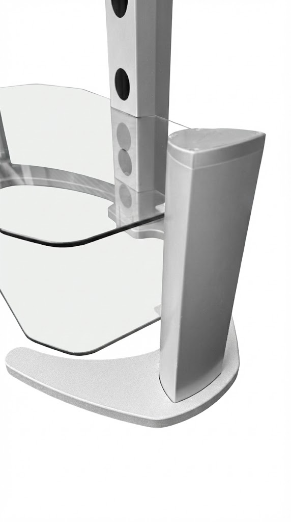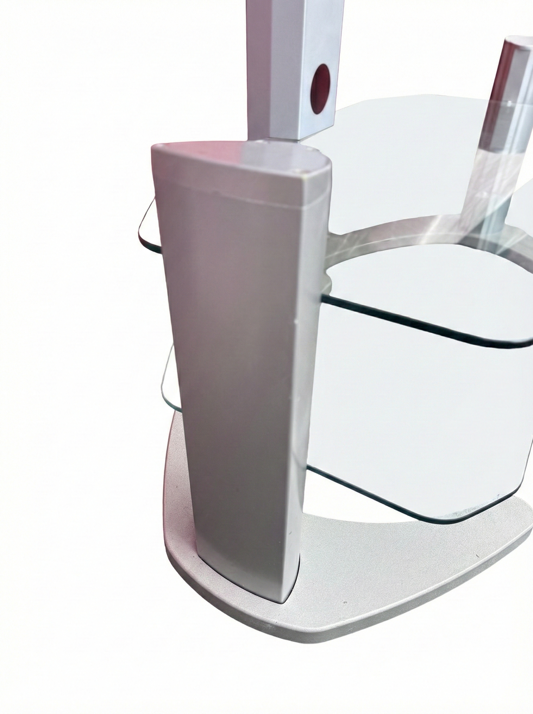 - Two curved tempered glass shelves for AV equipment