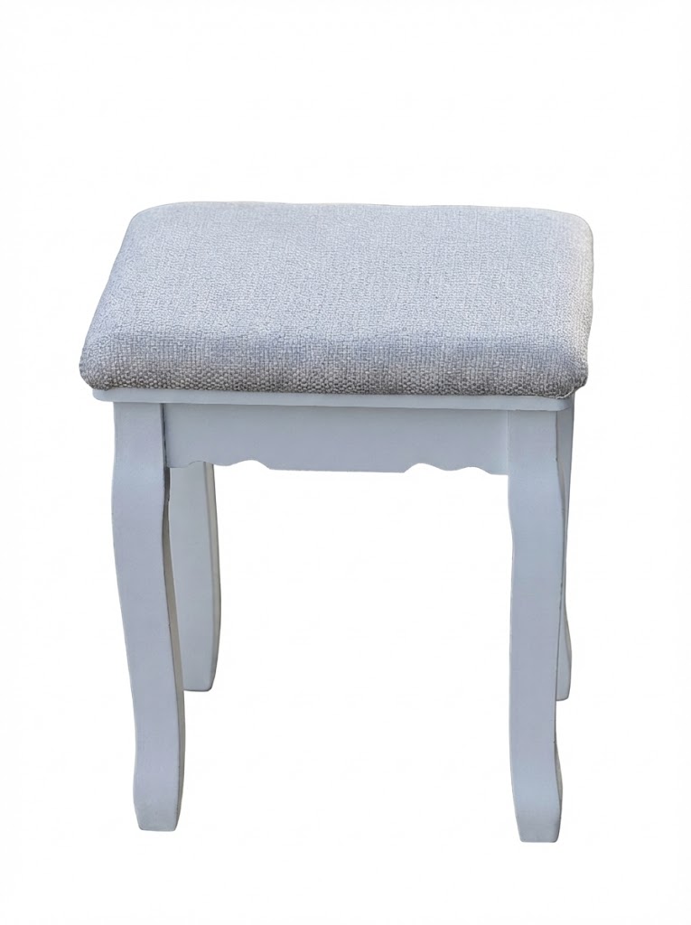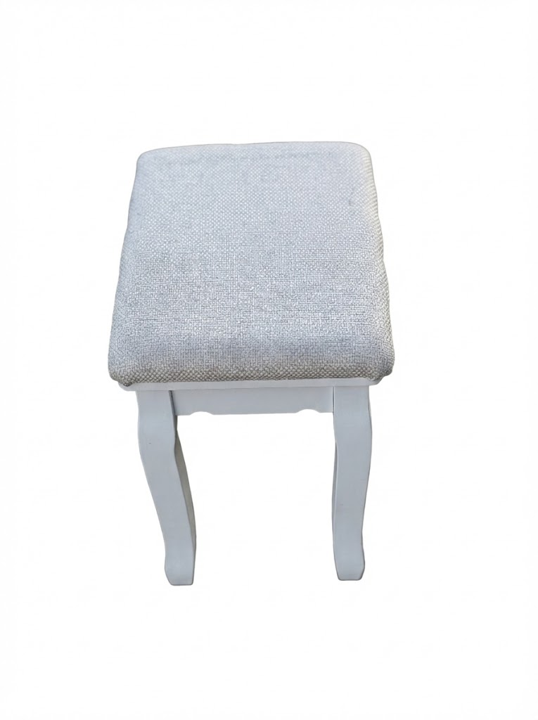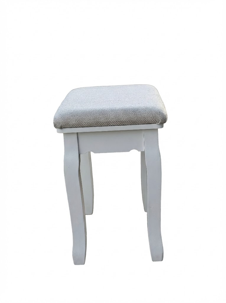 White Dressing Table Stool – Padded Seat with Curved Legs – Ex-Display