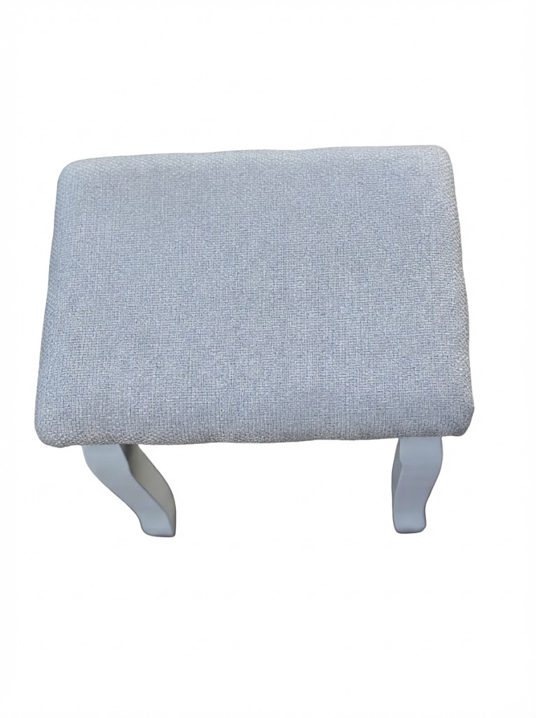 Add a touch of elegance to your bedroom with this charming French-style dressing table stool. The classic white painted frame features beautifully curved cabriole legs, whilst the generously padded seat is upholstered in a soft grey linen-look fabric for comfort and style.